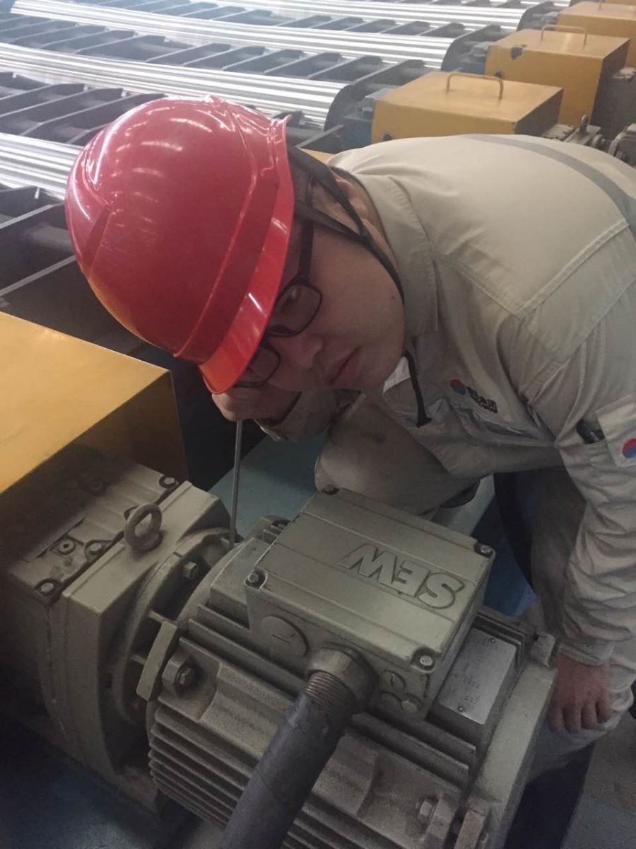 王文博經(jīng)歷無數(shù)次輔傳設(shè)備故障后,對(duì)本職工作也有了更層的認(rèn)識(shí)與理解。他經(jīng)常想:“設(shè)備跟人一樣。人只有會(huì)養(yǎng)生才會(huì)有一個(gè)健康的身體。而我們身為設(shè)備的‘醫(yī)生’,除了要重視設(shè)備故障解決方法外,更應(yīng)該重視設(shè)備的維護(hù)方法。只有這樣,才能有效減少設(shè)備故障的發(fā)生頻率,保證生產(chǎn)線長(zhǎng)周期穩(wěn)定運(yùn)行”。由于對(duì)設(shè)備的熟知,王文博主動(dòng)制定了《輔傳電機(jī)潤滑保養(yǎng)周期》、《輔傳控制柜清灰周期》、《輔傳系統(tǒng)日常巡視重點(diǎn)》等一系列維護(hù)方法。每天,他會(huì)習(xí)慣性地走進(jìn)輔傳室觀察各種參數(shù)變化有無異常,認(rèn)真記錄輔傳設(shè)備每次故障發(fā)生的時(shí)間、故障現(xiàn)象、處理方法及如何避免。如今,整個(gè)輔傳系統(tǒng)設(shè)備在所有電氣設(shè)備中故障發(fā)生率最低。這,與王文博的勤奮和努力密不可分。