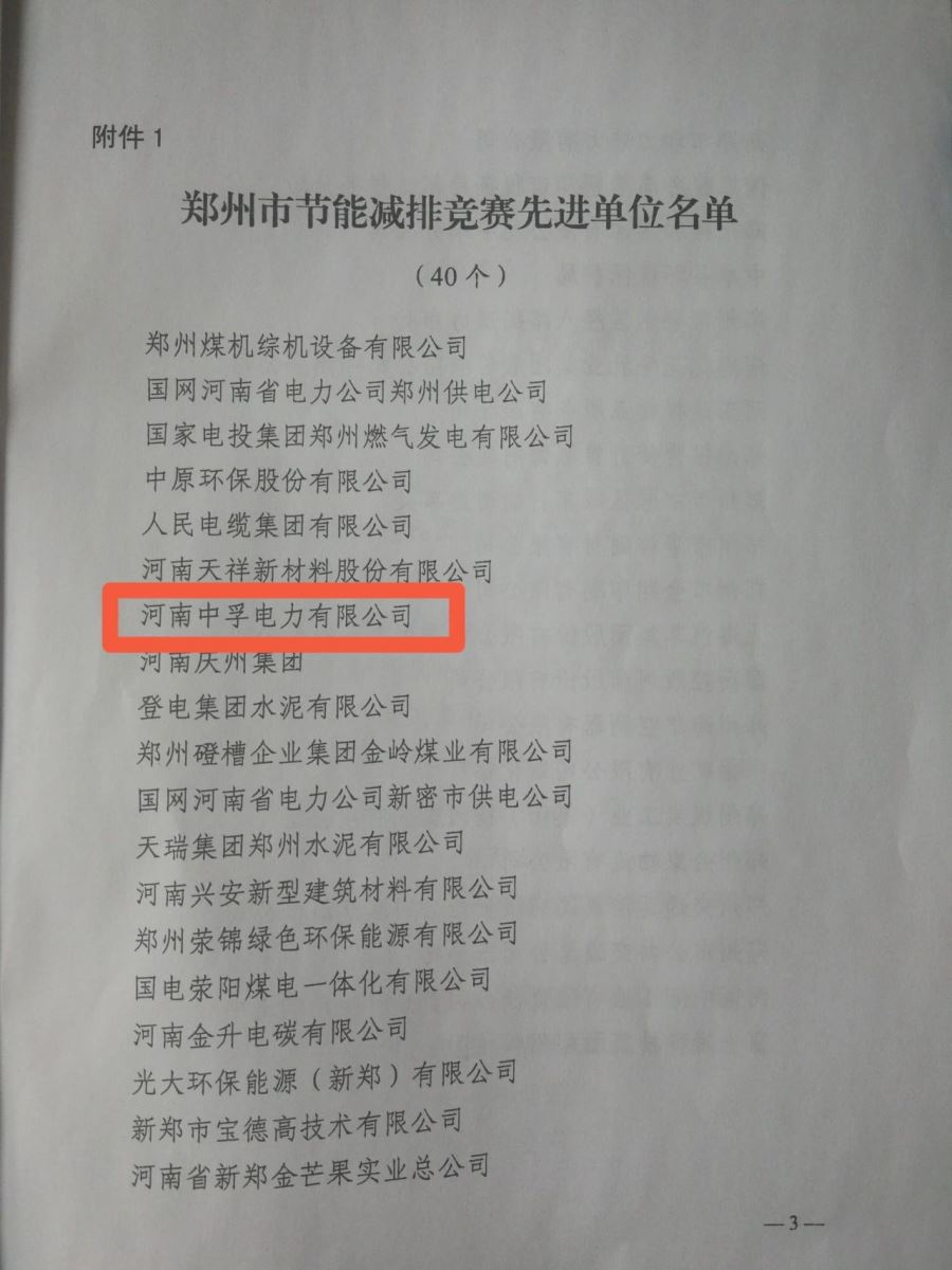 中孚電力公司被評為“鄭州市節(jié)能減排競賽先進(jìn)單位”