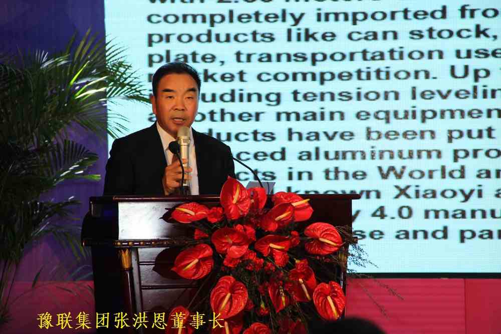 豫聯(lián)集團張洪恩董事長發(fā)表了熱情洋溢的致辭。他首先代表公司董事會和全體員工對蒞臨活動的各位嘉賓、朋友表示熱烈的歡迎和衷心的感謝。他指出,豫聯(lián)集團起步于1975年初籌建的河南鞏縣電廠,40年來,全體豫聯(lián)人秉承“誠信為本”的核心理念,以“建設(shè)團結(jié)文明、管理科學、效益一流、環(huán)境優(yōu)美、職工安居樂業(yè)的現(xiàn)代化企業(yè)”為共同愿景,眾志成城,艱苦奮斗,與時俱進,創(chuàng)新發(fā)展,堅持“以產(chǎn)業(yè)為基礎(chǔ)、以資本運營和科技創(chuàng)新為雙翼”的發(fā)展道路,將企業(yè)由一個地方小電廠發(fā)展成為了擁有煤、電、鋁、鋁精深加工全產(chǎn)業(yè)鏈的國際化高端鋁合金新材料企業(yè)集團,連續(xù)多年入圍中國企業(yè)500強。按照“國際一流、國內(nèi)領(lǐng)先”的目標,公司投資建設(shè)的60萬噸高性能鋁合金板帶箔加工項目主要設(shè)備已全部投產(chǎn),它是國內(nèi)第一條全進口德國SMC2.56米寬幅鋁合金加工項目,主要生產(chǎn)替代進口的易拉罐料、高端電子箔坯料、汽車板、艦船板、高端運輸壓力容器合金板等高端產(chǎn)品,鋁精深加工產(chǎn)品全面投放市場,參與國際市場競爭。至此,在鞏義土地上有了世界最先進的鋁加工技術(shù)設(shè)備、高端產(chǎn)品,有了繼鞏義歷史上知名的孝義兵工廠之后的第一家高端加工制造企業(yè),有了打造中國工業(yè)4.0制造業(yè)的載體,有了打造百年企業(yè)、參與國際市場競爭的平臺。根據(jù)社會經(jīng)濟時代發(fā)展的要求,中孚實業(yè)已啟動股票增發(fā),進入互聯(lián)網(wǎng)大數(shù)據(jù)新領(lǐng)域的工作,中孚制造4.0戰(zhàn)略也全面啟動。豫聯(lián)集團、中孚實業(yè)將堅持既定發(fā)展方向,發(fā)揚豫聯(lián)精神,與時俱進,不斷把企業(yè)推向前進!