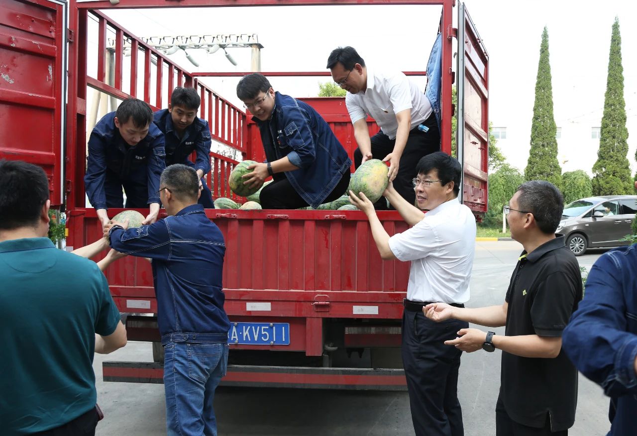 受集團(tuán)公司賀懷欽董事長(zhǎng)委托,7月8日上午,中孚實(shí)業(yè)董事長(zhǎng)崔紅松帶隊(duì),集團(tuán)公司部分班子成員、有關(guān)部門人員組成慰問組,分別到電力公司、高精鋁公司、鋁業(yè)公司、技術(shù)公司、炭素公司等十余家單位,送去16000斤西瓜、150件純凈水以及藿香正氣水、夏桑菊等防暑降溫用品,看望、慰問堅(jiān)守崗位的廣大一線員工。