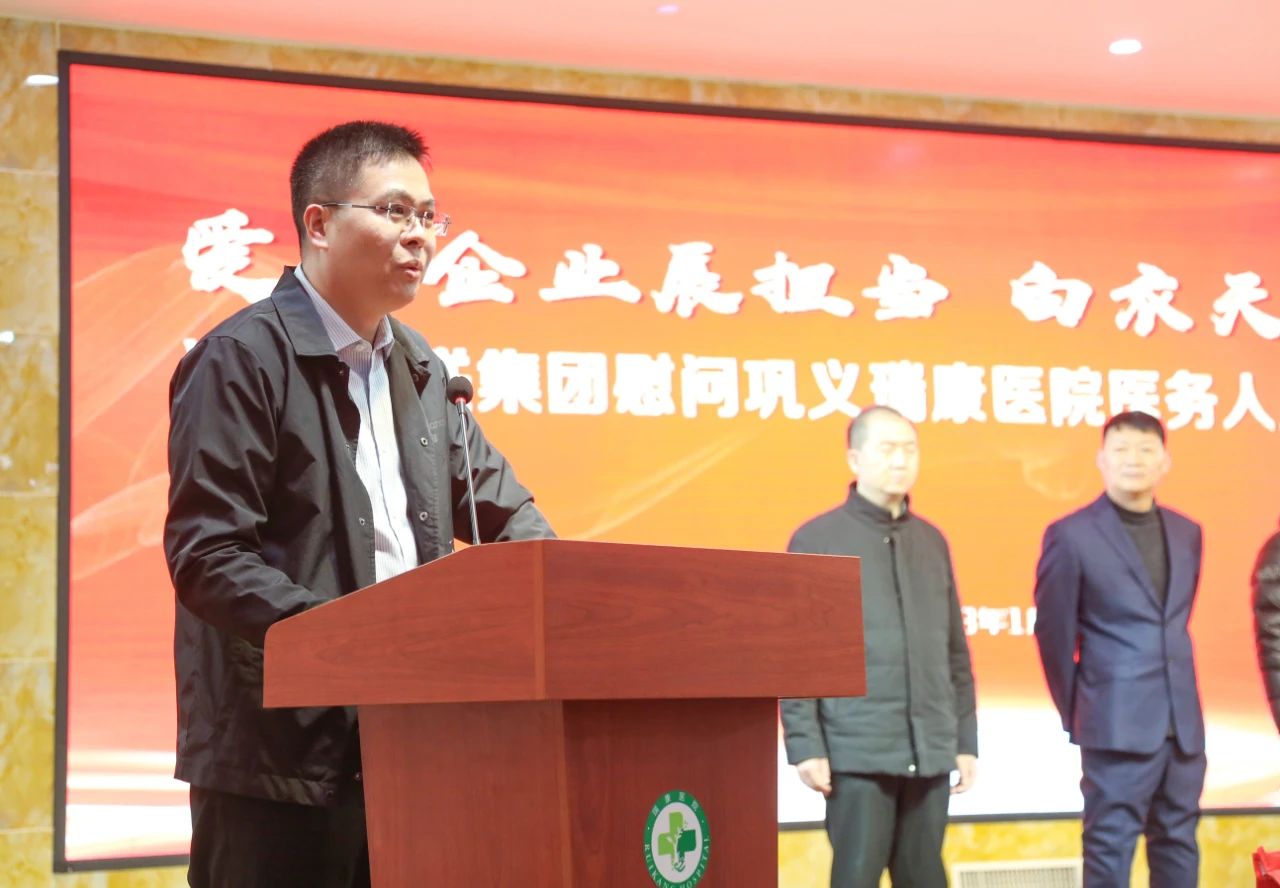 為感謝廣大醫(yī)務(wù)工作者三年來的辛勤付出, 1月14日(小年)上午,冒著紛紛瑞雪,豫聯(lián)集團(tuán)總經(jīng)理宋志彬,中孚實(shí)業(yè)副總經(jīng)理曹景彪,河南怡誠創(chuàng)投總經(jīng)理岳海濤、副總經(jīng)理白繼軍一行代表豫聯(lián)集團(tuán)對(duì)鞏義市人民醫(yī)院及鞏義瑞康醫(yī)院一線醫(yī)務(wù)工作者進(jìn)行愛心慰問。鞏義市人民醫(yī)院院長郜炎輝,鞏義市婦幼保健院院長楊俊紅,鞏義瑞康醫(yī)院院長劉海陽、黨支部書記李露江等出席慰問活動(dòng)。