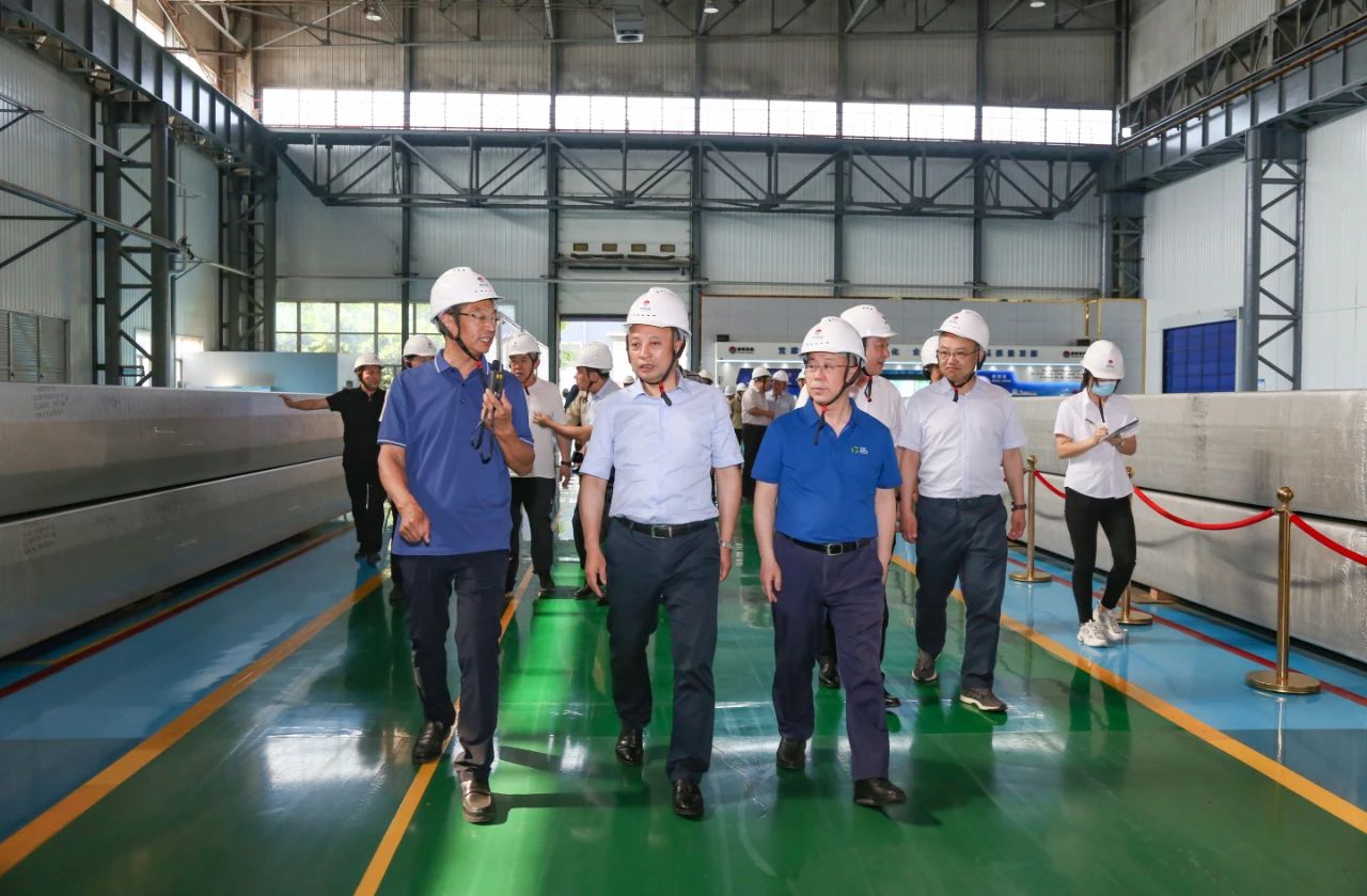 在豫聯(lián)集團(tuán)高精鋁生產(chǎn)現(xiàn)場,中孚實業(yè)董事長馬文超向調(diào)研組介紹了企業(yè)產(chǎn)業(yè)規(guī)模、綠色發(fā)展以及鋁精深加工生產(chǎn)工藝、裝備技術(shù)、產(chǎn)品市場等情況。