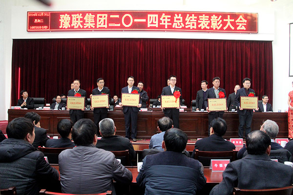會上,中孚實業(yè)董事長賀懷欽作2014年度工作總結(jié)報告,并宣讀了豫聯(lián)政文〔2015〕1號文件《關(guān)于貫徹落實〈豫聯(lián)集團二〇一五年經(jīng)營目標〉和〈二〇一五年績效考評辦法〉的決定》;集團公司黨委書記、副董事長馬路平宣讀了豫聯(lián)黨文〔2015〕1號文件《二〇一五年集團公司黨委工作意見》;中孚實業(yè)總經(jīng)理崔紅松宣讀了《關(guān)于表彰集團公司2014年度先進集體和先進個人的決定》和《關(guān)于表彰集團公司2014年度先進基層黨組織和優(yōu)秀黨員的決定》。