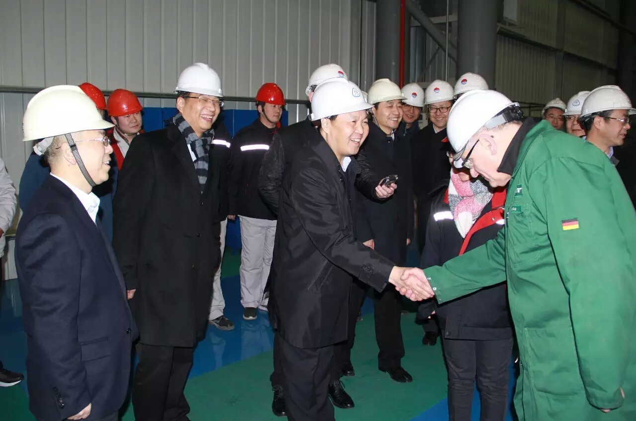 在擴(kuò)建高精鋁,集團(tuán)公司領(lǐng)導(dǎo)班子共同參觀了高精鋁生產(chǎn)的全部流程。在進(jìn)口拉矯工區(qū),賀懷欽董事長還專門與正在加緊進(jìn)行設(shè)備調(diào)試的外方專家進(jìn)行了親切交談,并為他送上了新春佳節(jié)的美好祝福。
