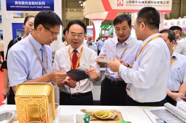 啟動(dòng)儀式結(jié)束后,陳全訓(xùn)會(huì)長(zhǎng)等領(lǐng)導(dǎo)親臨中孚實(shí)業(yè)展臺(tái),詳細(xì)觀摩了公司合金板材、罐料、鋁箔等鋁精深加工產(chǎn)品展示,仔細(xì)詢(xún)問(wèn)了公司生產(chǎn)經(jīng)營(yíng)及市場(chǎng)銷(xiāo)售情況,對(duì)企業(yè)取得的轉(zhuǎn)型升級(jí)顯著成績(jī)連聲稱(chēng)贊。