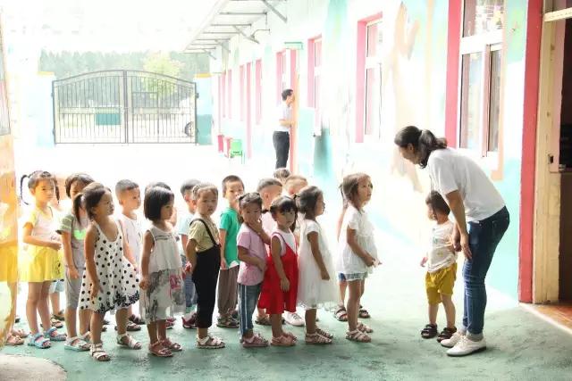 有的班級在玩木馬、有的班級在玩拍皮球,有的班級在玩滑滑梯……一切都是那么有條不紊,井然有序。