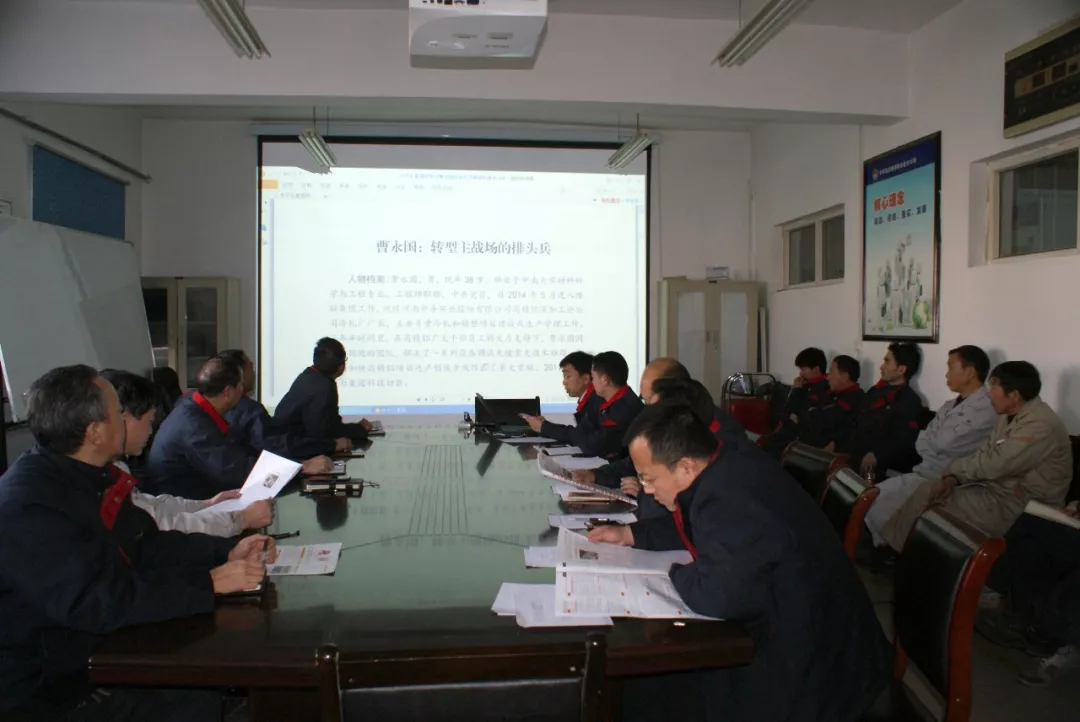 高精鋁四個支部分別通過政治學(xué)習(xí),組織黨員學(xué)習(xí)曹永國先進(jìn)事跡。生產(chǎn)現(xiàn)場各班組,利用班前會把曹永國同志的先進(jìn)事跡傳達(dá)到每位員工。