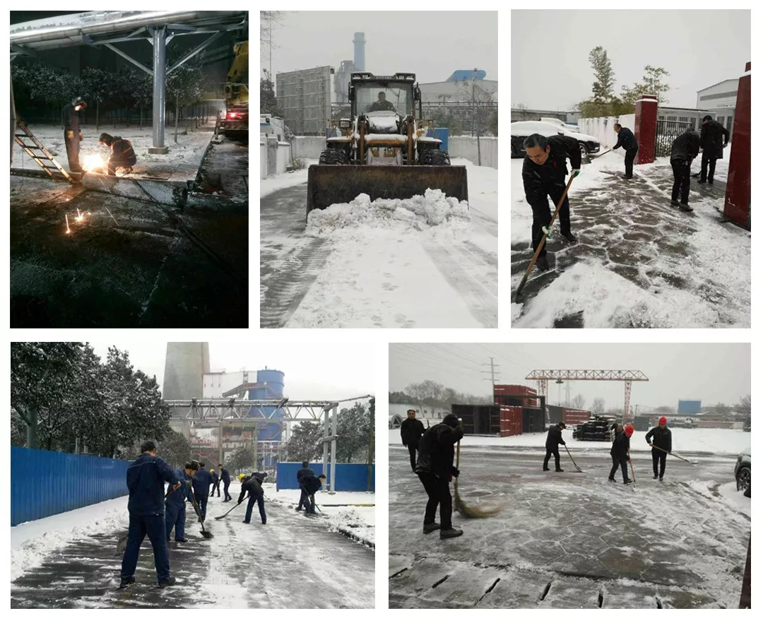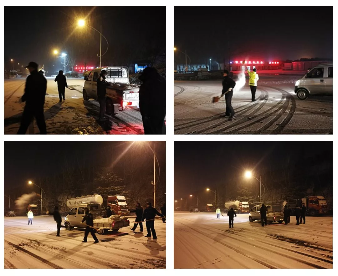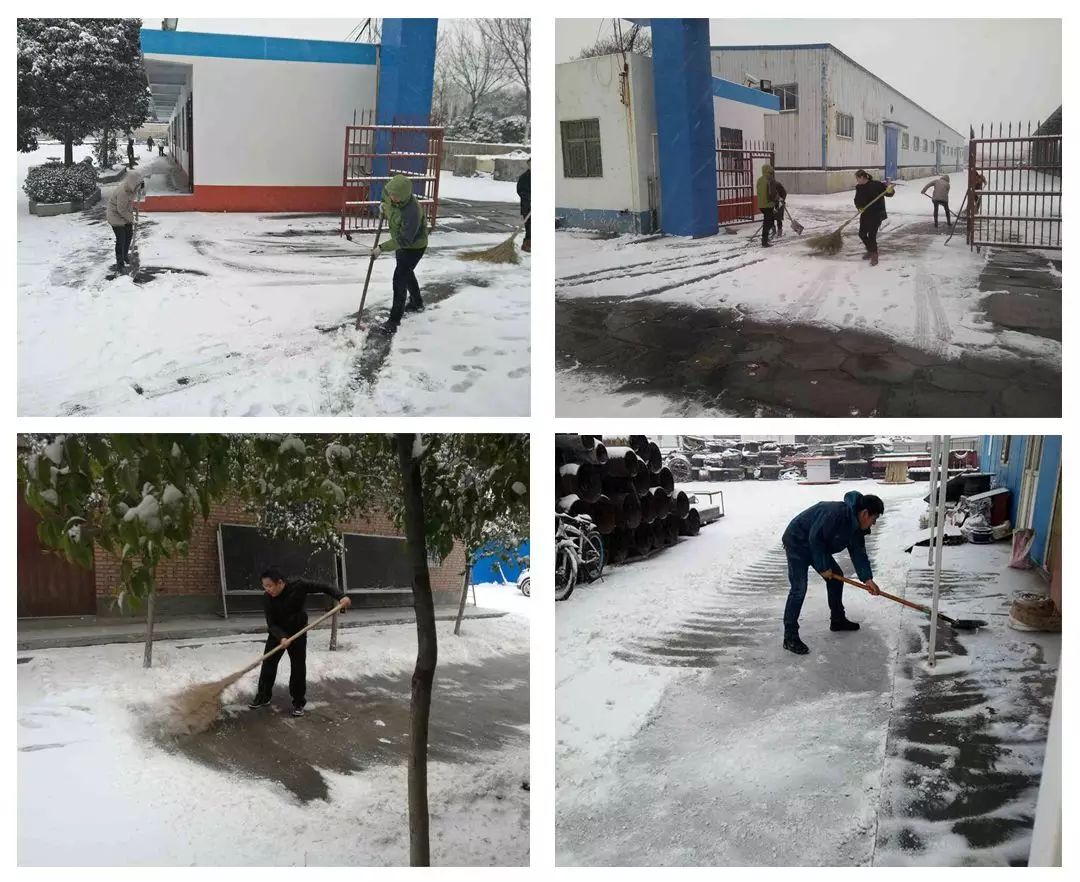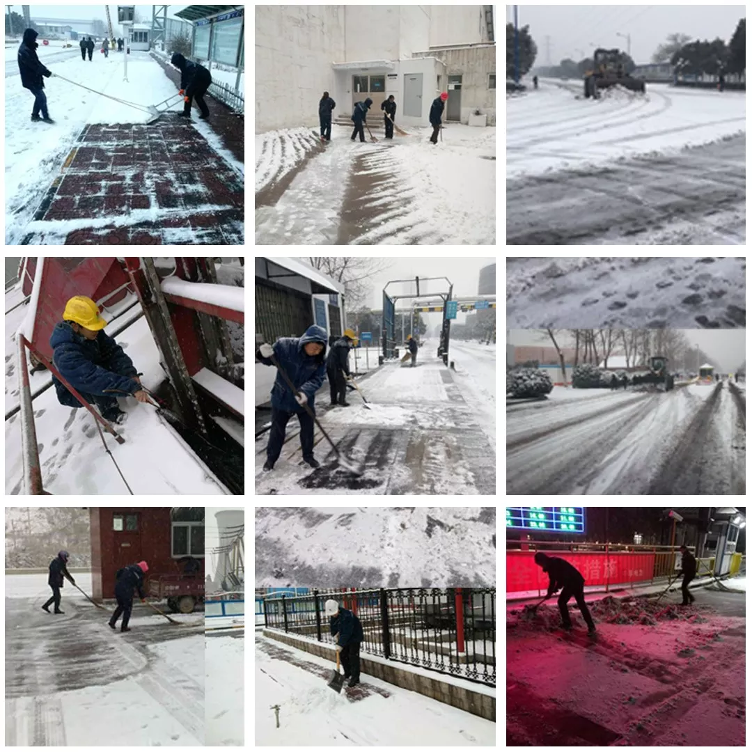飄雪雖然美麗,卻給道路通行帶來了不小的阻礙。為盡快消除積雪給公司正常生產(chǎn)經(jīng)營和員工出行帶來的諸多不便,各單位及時組織員工清掃積雪,確保道路暢通。