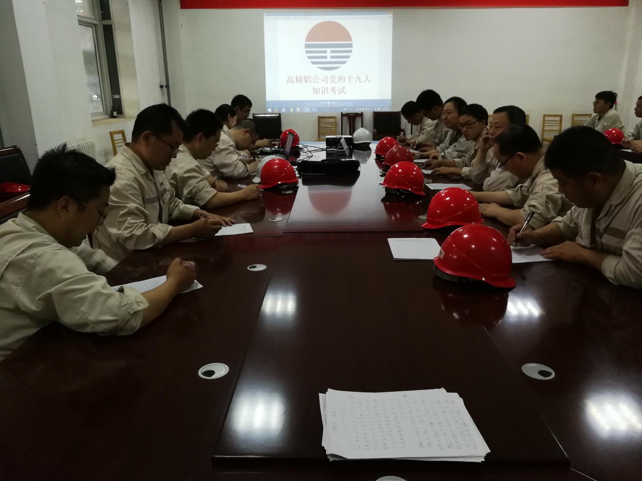 集團(tuán)公司按照“萬名黨員進(jìn)黨校,錘煉黨性鑄忠誠(chéng)” 活動(dòng)要求,于6月21日下午,以抽查的形式,在鋁電辦公樓五樓會(huì)議室組織部分黨員進(jìn)行學(xué)習(xí)十九大精神知識(shí)閉卷考試,旨在檢驗(yàn)前一階段廣大黨員深入學(xué)習(xí)十九大精神的學(xué)習(xí)成果。公司各單位黨員代表150余人參加了考試。