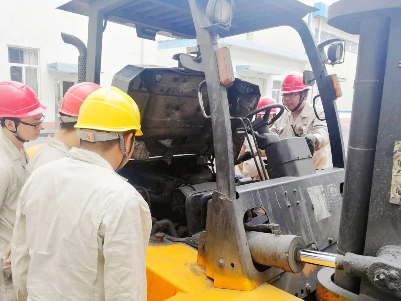 熱軋廠物料乙班正在進(jìn)行叉車構(gòu)造學(xué)習(xí)。