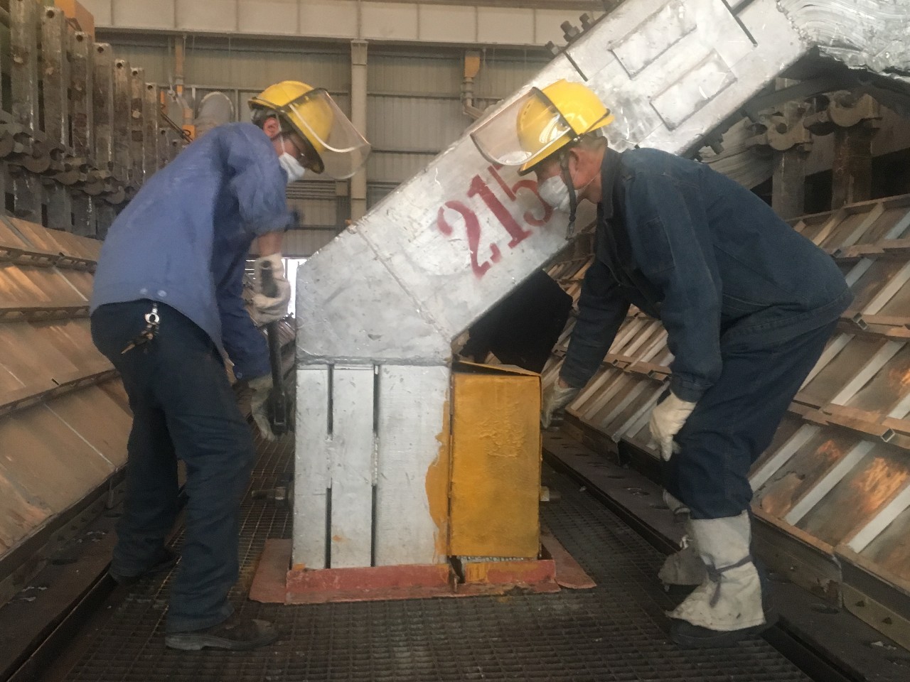 炎炎夏日,電解槽旁熱浪滾滾。中孚鋁業(yè)公司數(shù)百名電解工人面對(duì)著高溫的考驗(yàn),依然堅(jiān)守崗位。他們身著厚重的工作服,手戴厚實(shí)的“手燜子”,揮舞著幾十斤重的鐵工具,來回穿梭于電解槽間,打撈碳渣、換極、收邊、出鋁……他們戰(zhàn)高溫斗酷暑,用辛勤的汗水澆灌出火紅的鋁液。