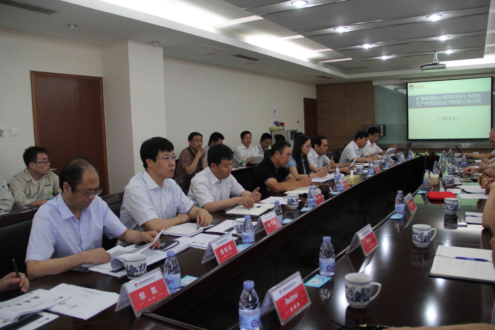6月11日上午,集團(tuán)公司在機(jī)關(guān)9樓會(huì)議室召開了擴(kuò)建高精鋁外方專家團(tuán)年中總結(jié)會(huì)議。集團(tuán)公司部分領(lǐng)導(dǎo)班子成員、外方專家團(tuán)、擴(kuò)建高精鋁領(lǐng)導(dǎo)班子、區(qū)域經(jīng)理及相關(guān)技術(shù)人員共40余人參加了會(huì)議。會(huì)議由集團(tuán)公司總經(jīng)理王元明主持。集團(tuán)公司張洪恩董事長表示,我們要堅(jiān)定信心,團(tuán)結(jié)一致,繼續(xù)努力,迎接高精鋁項(xiàng)目建成投產(chǎn)的全面勝利。