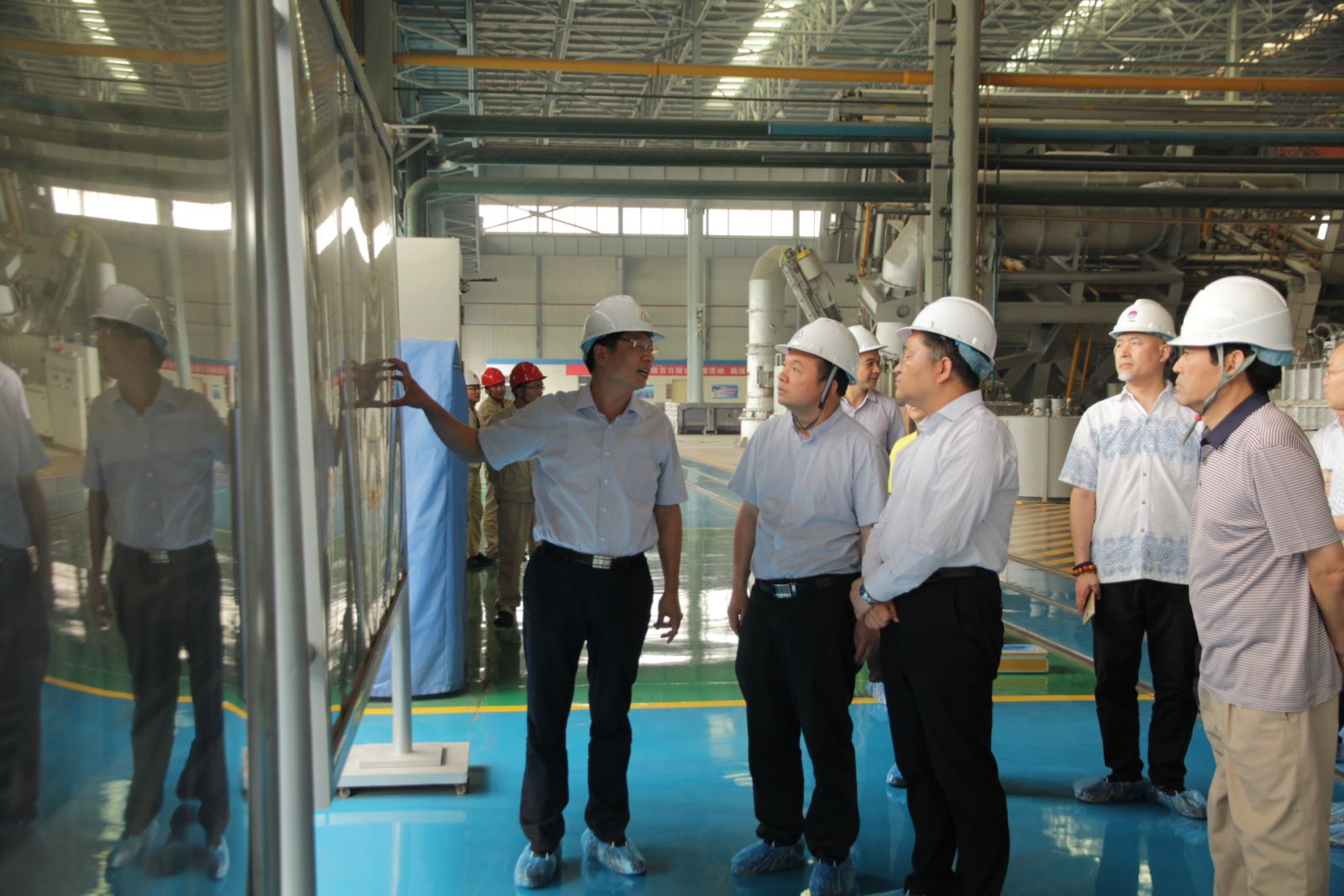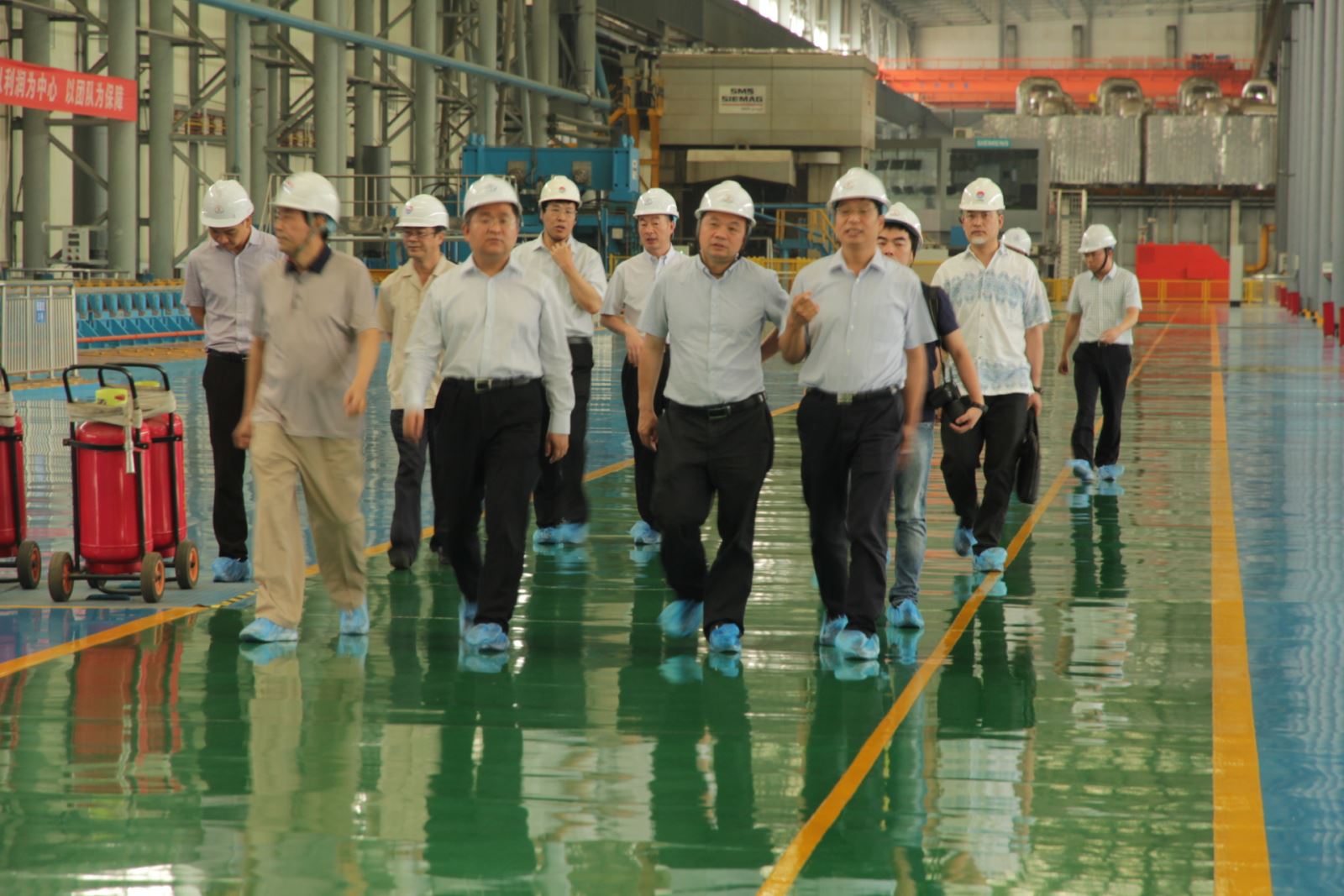 在園區(qū)觀景臺,受集團公司張洪恩董事長委托,王元明總經(jīng)理向楊建國簡要介紹了公司概況和發(fā)電、電解鋁、鋁精深加工等產(chǎn)業(yè)情況。在高精鋁公司,楊建國認真聽取了高精鋁項目建設(shè)及生產(chǎn)經(jīng)營情況, 對集團公司在轉(zhuǎn)型升級方面的做法、經(jīng)驗以及取得的成果給予充分肯定,同時希望公司按照既定的目標(biāo)計劃,加快項目建設(shè)進度,實現(xiàn)如期投產(chǎn),為豫聯(lián)產(chǎn)業(yè)集聚區(qū)的全面協(xié)調(diào)發(fā)展起到積極推動作用。