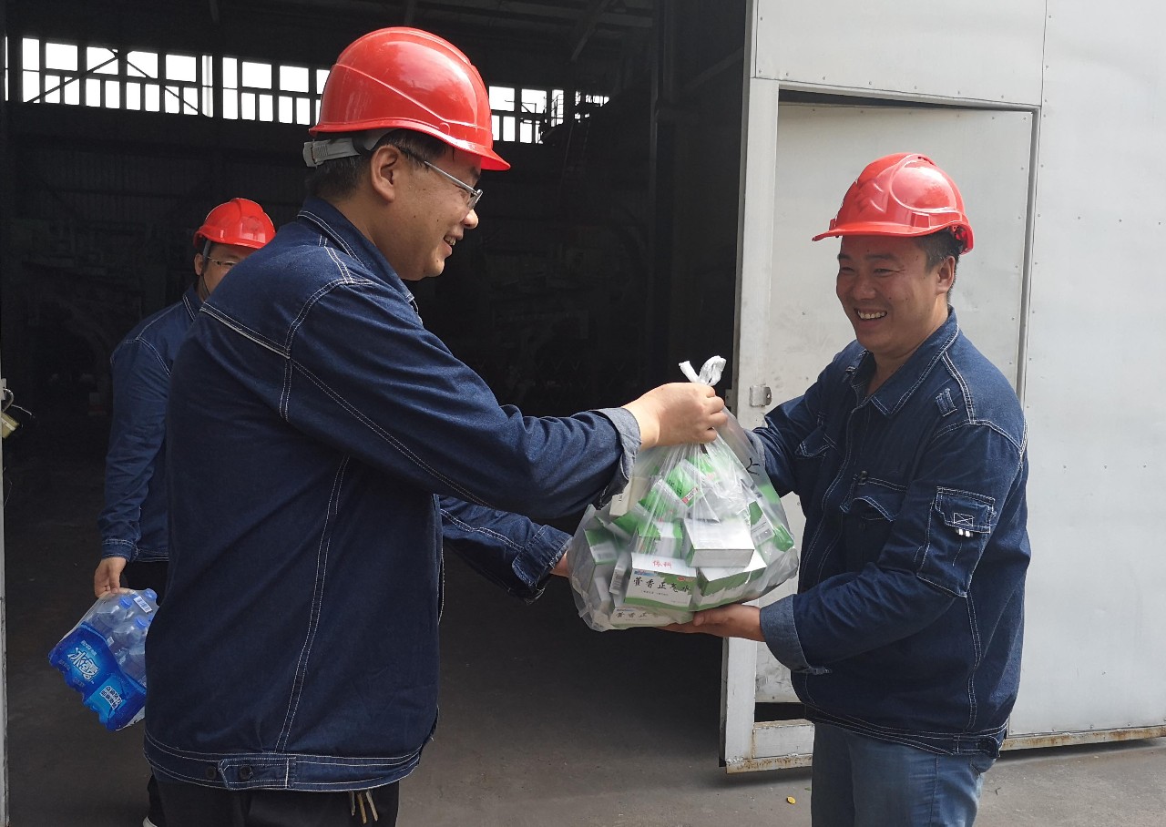 近日,檢修單位領(lǐng)導(dǎo)班子和行政后勤人員一起,深入檢修現(xiàn)場(chǎng)、班組,為一線員工送去夏桑菊、人丹、藿香正氣水、西瓜和冰糕等防暑降溫物品,對(duì)一線員工進(jìn)行了親切慰問(wèn)。