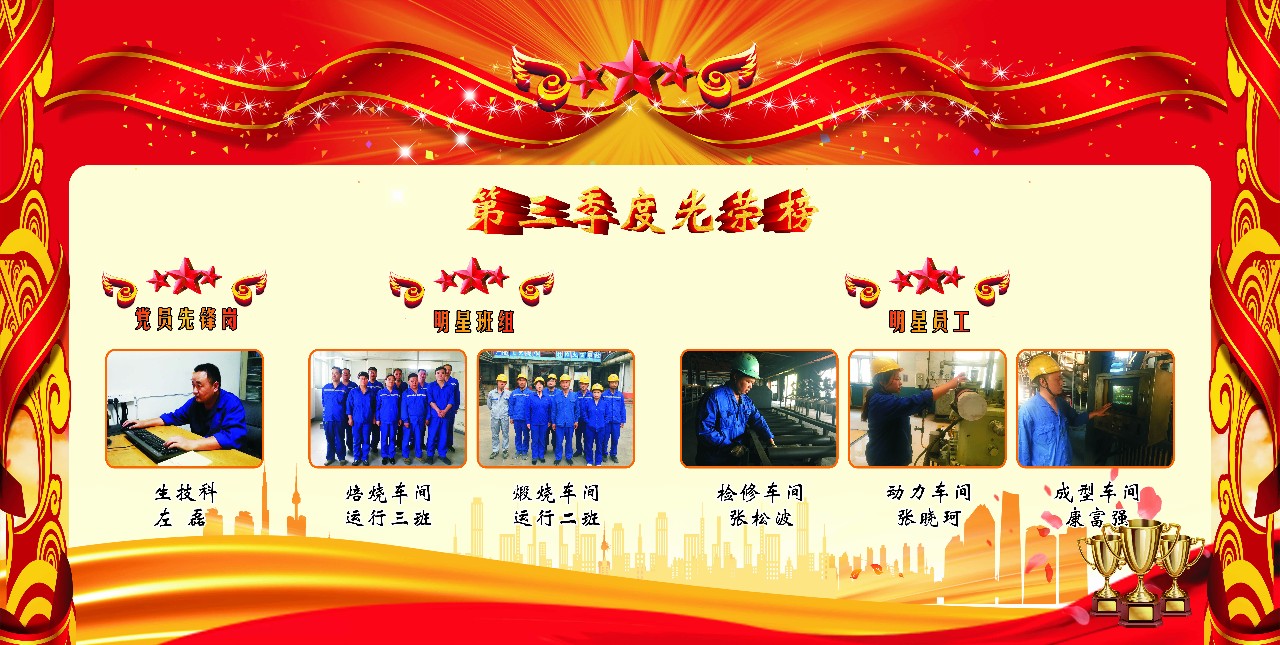為展示優(yōu)秀員工風(fēng)采,形成人人創(chuàng)優(yōu)、個個爭先的良好氛圍,近日,中孚炭素公司開展第三季度總結(jié)評比工作。經(jīng)各車間推薦及公司評比,焙燒車間運行三班、煅燒車間運行二班榮獲“明星班組”稱號,張松波、張曉珂、康富強(qiáng)榮獲“明星員工”稱號,左磊榮獲“黨員先鋒崗”稱號。